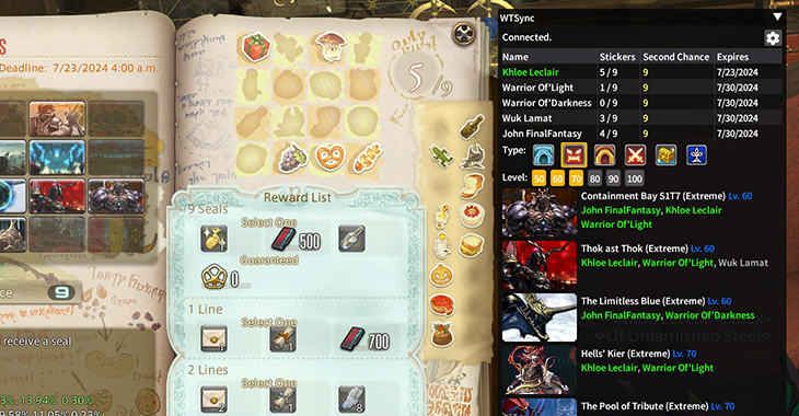 WTSync is a Dalamud plugin for Final Fantasy XIV that makes it easier to complete Wondrous Tails with your friends every week!